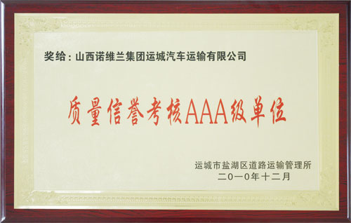 12月28日,集团旗下汽车运输有限公司被盐湖区道路运输管理所评为“质量信誉考核AAA级单位”,并奖励联想电脑一台。