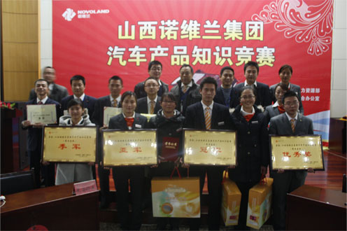 为营造健康的学习氛围、激发全体销售人员的学习热情,经过一个月紧张有序的开展,集团首届汽车知识竞赛于12月30日晚圆满结束。在紧张活泼的初赛、复赛、决赛中,各个竞赛团队积极作答、各显风采,丰富的专业知识、良好的协调配合让各个团队在你争我抢中赛出了友谊、赛出了水平。北京诺维兰总裁助理朱潇、汽贸执行总经理王红斌、轿车事业部总经理申邦学、微车微轿事业部总经理王绡栋、商用车售后总经理薛福磨及各品牌经理应邀出席仪式并为获奖选手颁发了奖牌和证书。