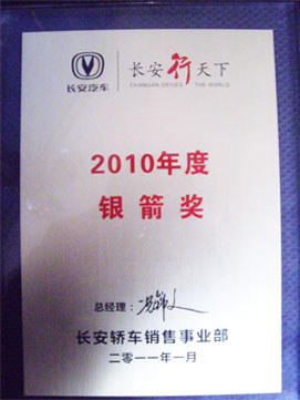 2011年元月4日——6日,受长安公司邀请,集团董事长兼总裁朱建军、承销事业部经理曲万锁、太原诺维兰长安轿车4S店经理张世昌在广东省珠海德翰大酒店参加了由长安公司举办的“长安轿车2011年商务会”,会上,长安公司对集团2010年取得的成绩给予了高度赞扬并授予集团“2010年度最佳团队建设奖”、“2010年度最佳服务保障奖”;太原市诺维兰汽车贸易有限公司被授予“2010年度银箭奖”、 “优秀总经理奖”。