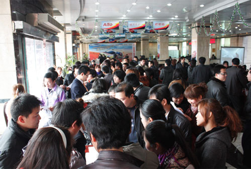2011年是诺维兰转型跨越大发展的关键之年,为了适应集团转型跨越大发展的需要,2月11日,集团隆重举办了“山西诺维兰集团专场招聘会”, 为广大求职者提供了卡乐仕全国连锁业务、汽车后服务、网络开发、市场营销、维修服务、钣金喷漆、销售顾问、服务顾问、备件库管、联防队员以及审计、会计、行政管理等100多个岗位。一大早就吸引了来自山西各地的有志之士前来报名,一天时间,慕名前来报名的应聘者就达1200余人,实现了本届招聘会“开门红”。