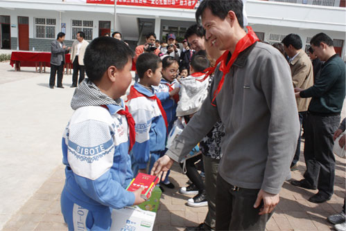 4月16日上午,集团与蒙牛运城办事处在平陆部官乡小学共同举办了“爱心礼物行动” 助力教育活动,集团副总裁韩创业、汽贸会员、卡乐仕会员以及各媒体80余人参加了此次公益活动。