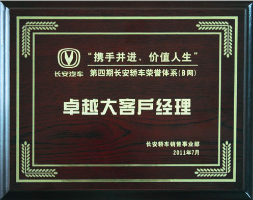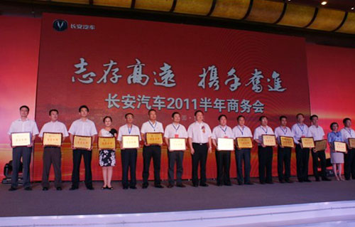 7月24日—27日,受长安公司邀请,集团执行董事朱潇、承销事业部实习总经理曲万锁在重庆金源酒店参加了由长安公司举办的“长安汽车2011半年商务会”,会上,长安公司对集团长安轿车B网2011年上半年取得的成绩给予高度赞扬并授予集团长安轿车B网“雷霆先锋奖”、“卓越团队奖”、“卓越大客户经理奖”。