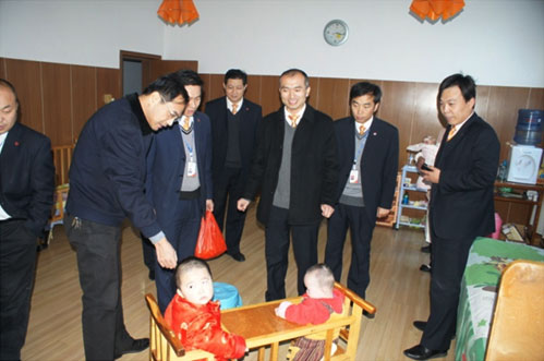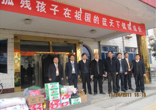 11月24日下午,受集团朱董事长的委托,汽贸公司执行总经理王红斌携汽贸各系统总经理,带着食品、玩具和生活用品,来到运城市社会福利院,对智障、伤残儿童进行慰问,奉献一片爱心。在儿童活动室,福利院李院长介绍了福利院基本情况,汽贸执行总经理王红斌亲手给智障及伤残儿童送上糖果、玩具,表达了诺维兰集团不断感恩社会、奉献社会、热爱社会公益光彩事业的拳拳之心。