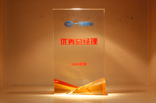 12月29日,一汽解放2012年商务年会在广州白云国际会议中心隆重召开。集团董事长兼总裁朱建军、副总裁韩创业、解放运营部经理郭瑞杰、太原公司经理闫东平参加了会议,会上,集团解放4S店由于出色的完成了厂方2011年度总任务,销量排名全国第二,被一汽解放公司授予“2011年度解放功勋代理商奖”、“2011年度解放优秀总经理奖 ”、 “2011年度解放最佳销售顾问奖”。并奖励奔腾B70轿车一辆。