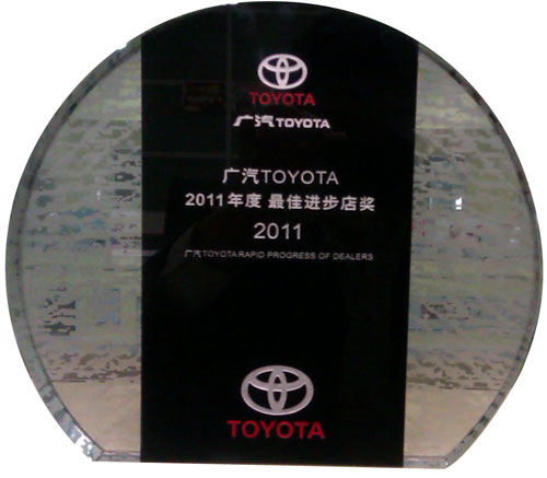 2月11日,集团广汽丰田店经理姚晓军带领该店管理团队在北京参加了由广汽丰田举办的华北大区经销商大会,会上,我集团广汽丰田店由于在2011年综合表现突出,尤其是销售满意度、售后KPI指标达成率明显提升,被授予广汽TOYOTA全国“2011年度最佳进步店奖”荣誉称号。