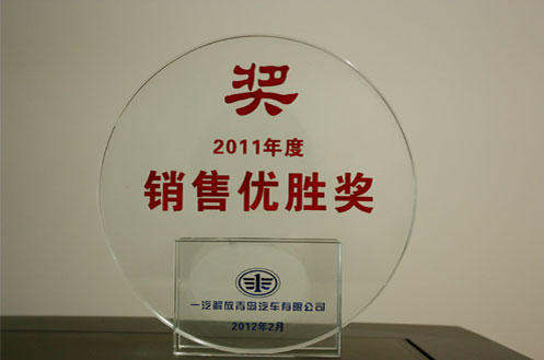 2月23日,集团董事长朱建军、副总裁韩创业、解放事业部总经理郭瑞杰等一行参加了由一汽解放青岛汽车有限公司在青岛召开的2012年产品推介会。会上,一汽解放青岛汽车有限公司对我集团解放4S店在2011年的工作予以充分肯定并授予集团“2011年度销售优胜奖”。